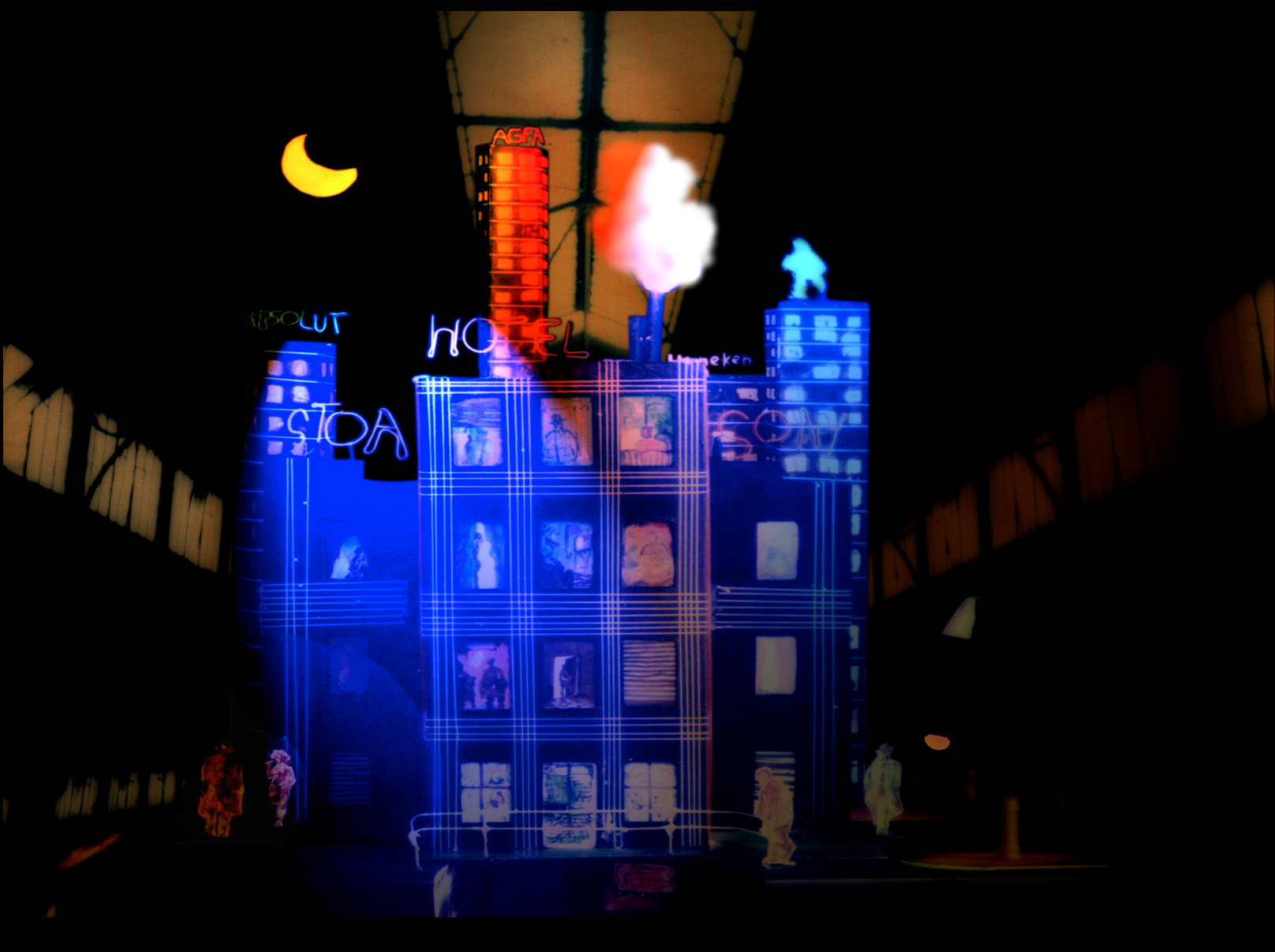 hotel Audiovisual work of black light illumination for the central arcade of the market modiano thessaloniki 2000 Dit not materialize hotelside view hotelfrom the catalog of the central gallery